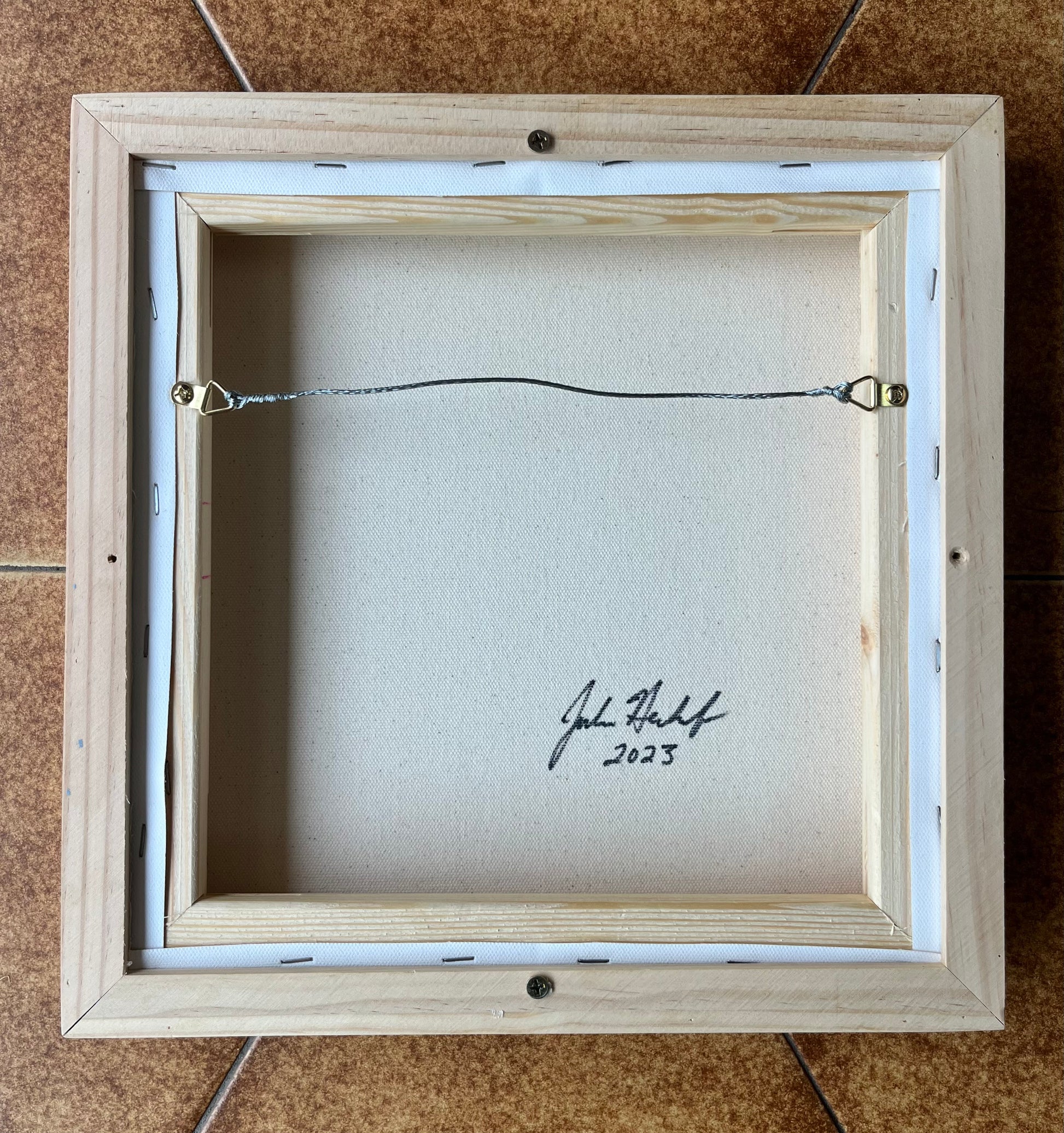 This has been painted with professional quality acrylic paints on a stretched canvas and has been sealed with a clear varnish for extra protection. It has a floating wood frame that has been sealed with rubbed beeswax.